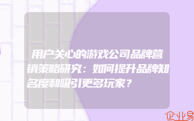 - 用户关心的游戏公司品牌营销策略研究:如何提升品牌知名度和吸引更多玩家?