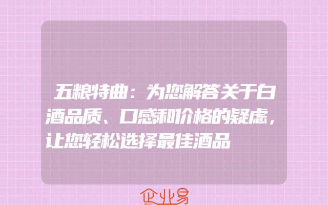 - 五粮特曲:为您解答关于白酒品质、口感和价格的疑虑,让您轻松选择最佳酒品