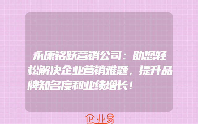 - 永康铭跃营销公司:助您轻松解决企业营销难题,提升品牌知名度和业绩增长!