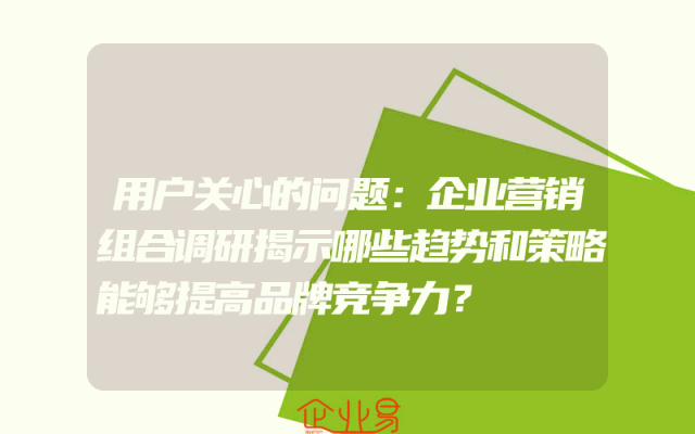 - 用户关心的问题:企业营销组合调研揭示哪些趋势和策略能够提高品牌竞争力?