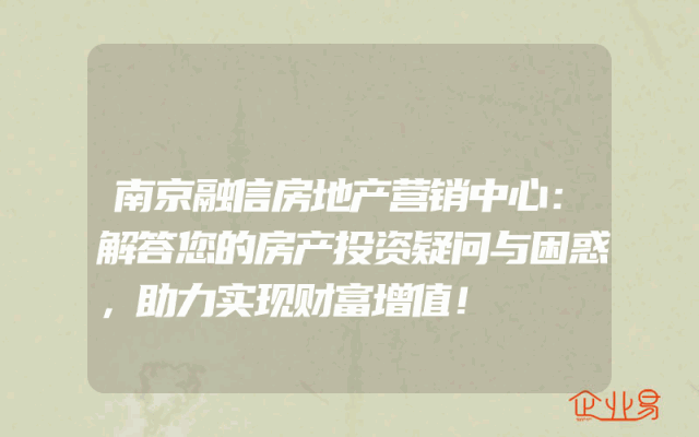 - 南京融信房地产营销中心:解答您的房产投资疑问与困惑,助力实现财富增值!