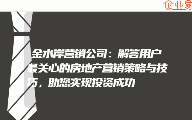 - 金水岸营销公司:解答用户最关心的房地产营销策略与技巧,助您实现投资成功