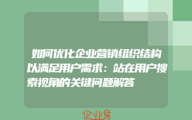 - 如何优化企业营销组织结构以满足用户需求:站在用户搜索视角的关键问题解答