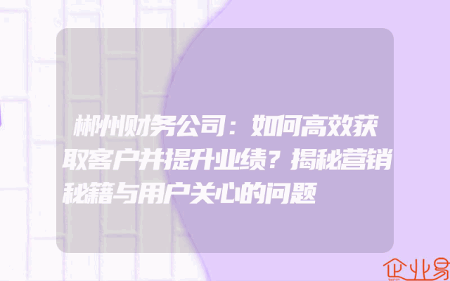 - 郴州财务公司:如何高效获取客户并提升业绩?揭秘营销秘籍与用户关心的问题