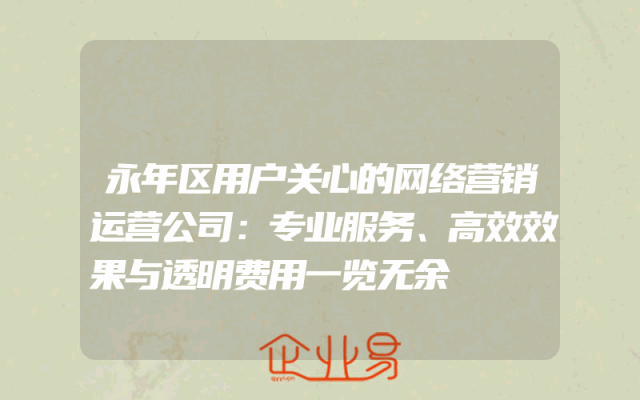 - 永年区用户关心的网络营销运营公司:专业服务、高效效果与透明费用一览无余