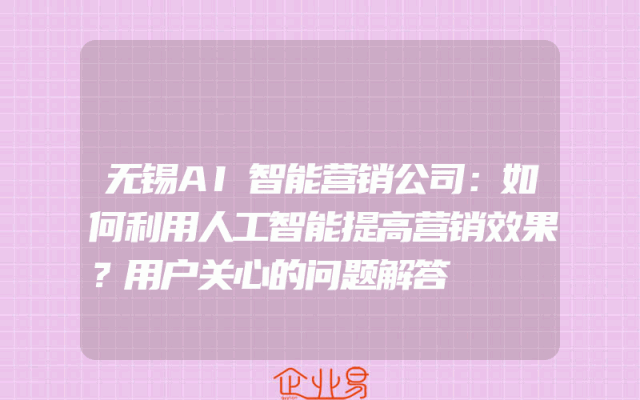 - 无锡AI智能营销公司:如何利用人工智能提高营销效果?用户关心的问题解答