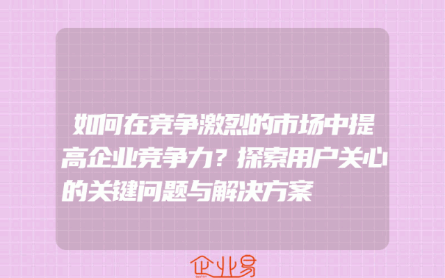 - 如何在竞争激烈的市场中提高企业竞争力?探索用户关心的关键问题与解决方案