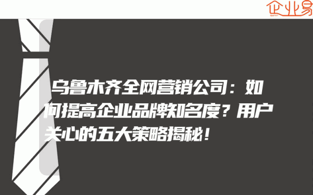 - 乌鲁木齐网络营销推广公司:如何提高企业知名度?用户关心的五大策略揭秘!