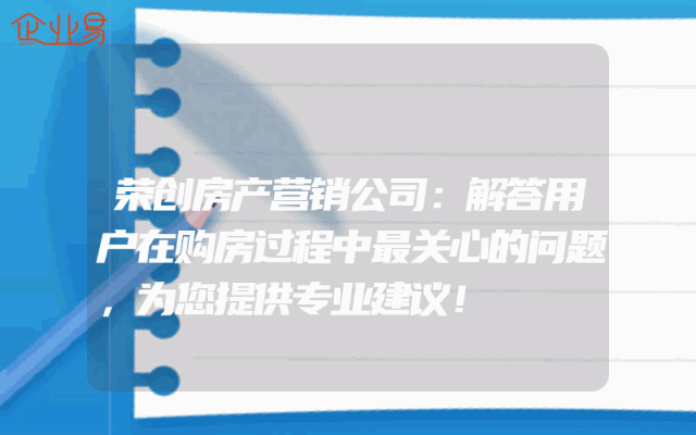 - 荣创房产营销公司:解答用户在购房过程中最关心的问题,为您提供专业建议!