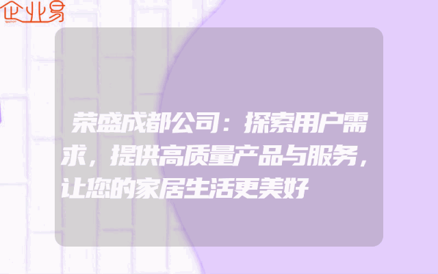 - 荣盛成都公司:探索用户需求,提供高质量产品与服务,让您的家居生活更美好