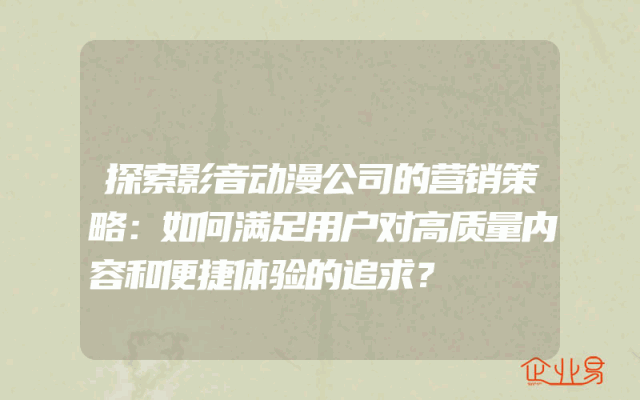- 探索影音动漫公司的营销策略:如何满足用户对高质量内容和便捷体验的追求?
