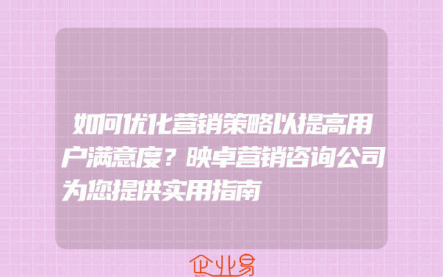 - 如何优化营销策略以提高用户满意度?映卓营销咨询公司为您提供实用指南
