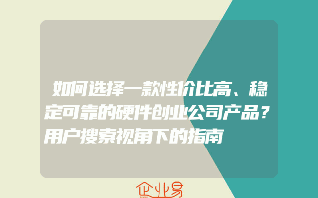 - 如何选择一款性价比高、稳定可靠的硬件创业公司产品?用户搜索视角下的指南