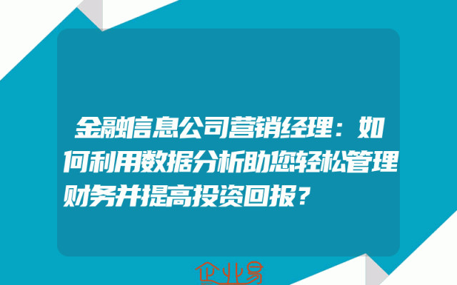 - 金融信息公司营销经理:如何利用数据分析助您轻松管理财务并提高投资回报?在当今的金融市场中,数据已经成为了一种重要的资源。对于金融信息公司来说,更是如此。作为营销经理,您需要充分利用数据分析来帮助客户轻松管理财务并提高投资回报。下面,我将为您