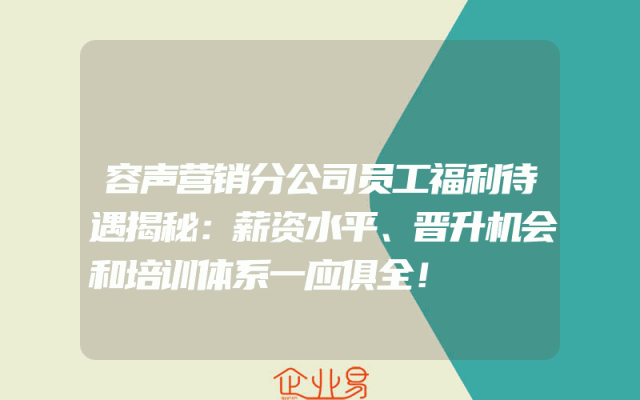 - 容声营销分公司员工福利待遇揭秘:薪资水平、晋升机会和培训体系一应俱全!