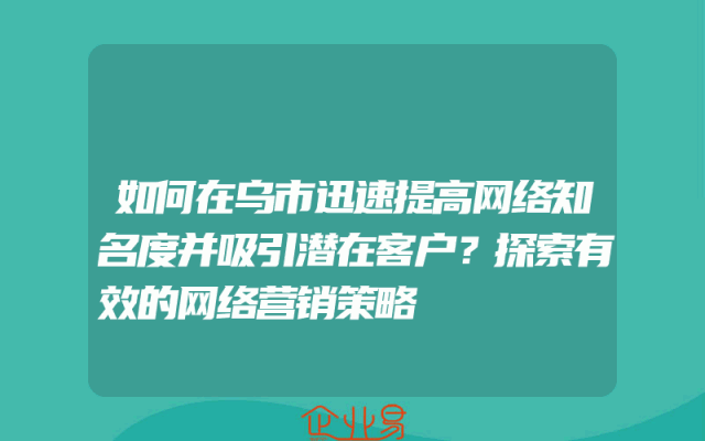 - 如何在乌市迅速提高网络知名度并吸引潜在客户?探索有效的网络营销策略