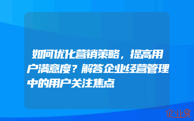 - 如何优化营销策略,提高用户满意度?解答企业经营管理中的用户关注焦点