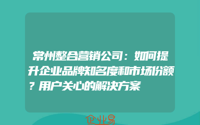 - 常州整合营销公司:如何提升企业品牌知名度和市场份额?用户关心的解决方案