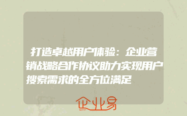 - 打造卓越用户体验:企业营销战略合作协议助力实现用户搜索需求的全方位满足