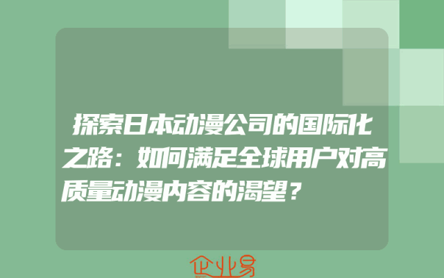 - 探索日本动漫公司的国际化之路:如何满足全球用户对高质量动漫内容的渴望?
