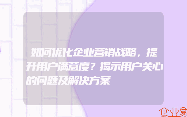 - 如何优化企业营销战略,提升用户满意度?揭示用户关心的问题及解决方案