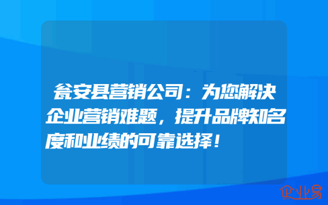 - 瓮安县营销公司:为您解决企业营销难题,提升品牌知名度和业绩的可靠选择!