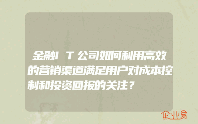 - 金融IT公司如何利用高效的营销渠道满足用户对成本控制和投资回报的关注?