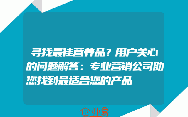 - 寻找最佳营养品?用户关心的问题解答:专业营销公司助您找到最适合您的产品