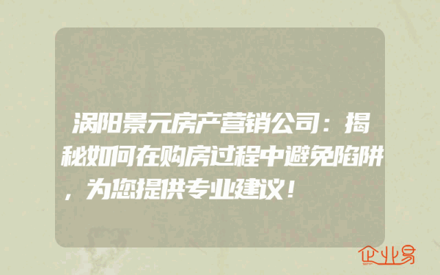 - 涡阳景元房产营销公司:揭秘如何在购房过程中避免陷阱,为您提供专业建议!