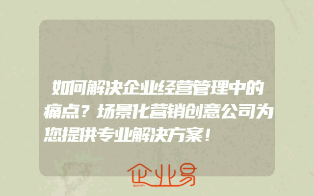 - 如何解决企业经营管理中的痛点?场景化营销创意公司为您提供专业解决方案!