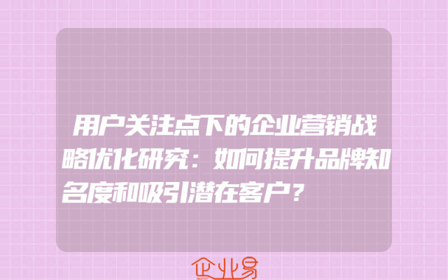 - 用户关注点下的企业营销战略优化研究:如何提升品牌知名度和吸引潜在客户?