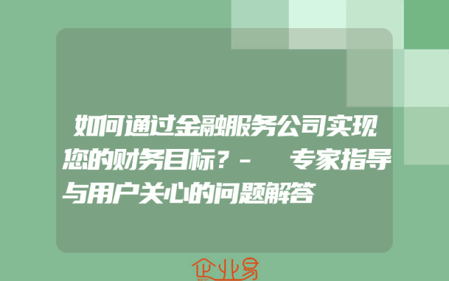 - 如何通过金融服务公司实现您的财务目标?- 专家指导与用户关心的问题解答
