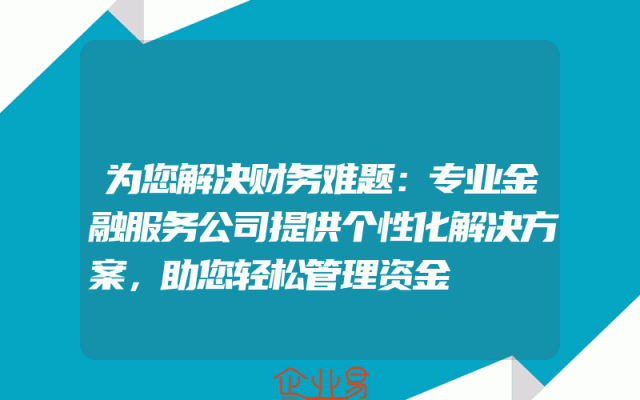 - 为您解决财务难题:专业金融服务公司提供个性化解决方案,助您轻松管理资金
