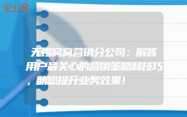 - 无锡窝窝营销分公司:解答用户最关心的营销策略和技巧,助您提升业务效果!