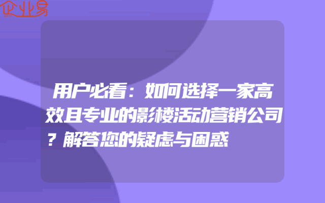 - 用户必看:如何选择一家高效且专业的影楼活动营销公司?解答您的疑虑与困惑