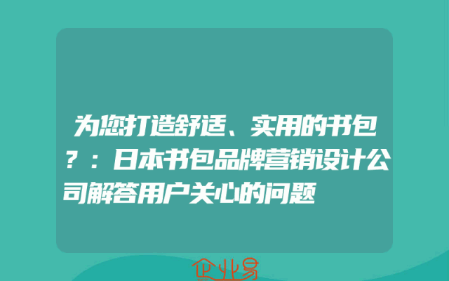 - 为您打造舒适、实用的书包?:日本书包品牌营销设计公司解答用户关心的问题