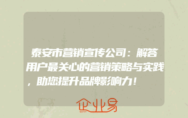 - 泰安市营销宣传公司:解答用户最关心的营销策略与实践,助您提升品牌影响力!