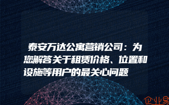 - 泰安万达公寓营销公司:为您解答关于租赁价格、位置和设施等用户的最关心问题
