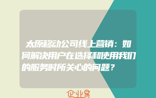 - 太原移动公司线上营销:如何解决用户在选择和使用我们的服务时所关心的问题?