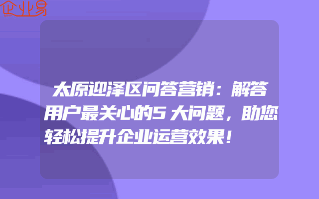 - 太原迎泽区问答营销:解答用户最关心的5大问题,助您轻松提升企业运营效果!