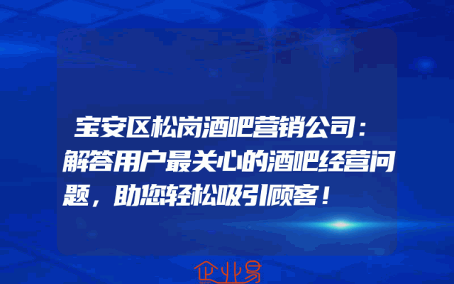 - 宝安区松岗酒吧营销公司:解答用户最关心的酒吧经营问题,助您轻松吸引顾客!