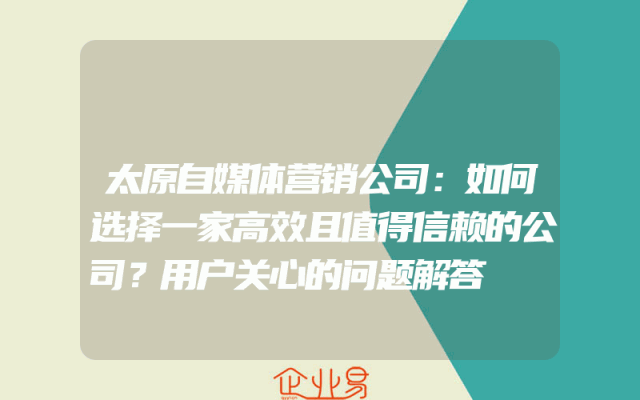 - 太原自媒体营销公司:如何选择一家高效且值得信赖的公司?用户关心的问题解答