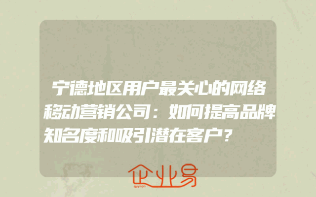 - 宁德地区用户最关心的网络移动营销公司:如何提高品牌知名度和吸引潜在客户?