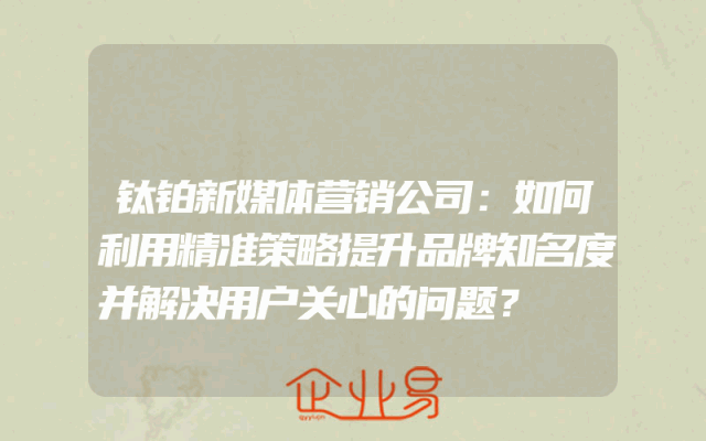 - 钛铂新媒体营销公司:如何利用精准策略提升品牌知名度并解决用户关心的问题?