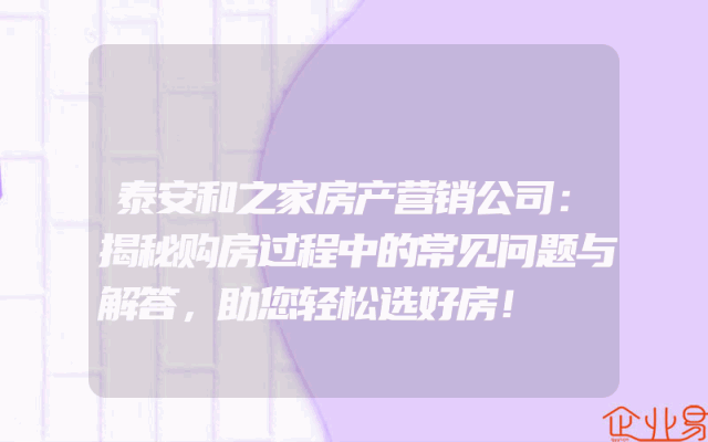 - 泰安和之家房产营销公司:揭秘购房过程中的常见问题与解答,助您轻松选好房!