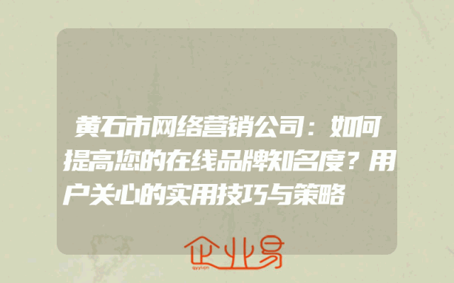 - 黄石市网络营销公司:如何提高您的在线品牌知名度?用户关心的实用技巧与策略