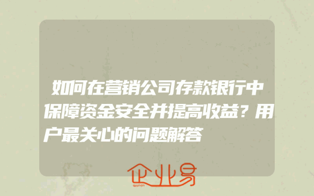 - 如何在营销公司存款银行中保障资金安全并提高收益?用户最关心的问题解答