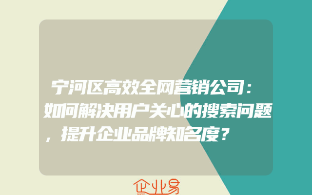 - 宁河区高效全网营销公司:如何解决用户关心的搜索问题,提升企业品牌知名度?