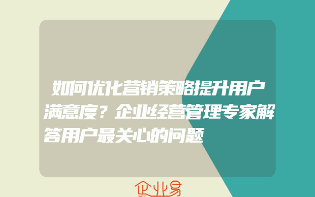 - 如何优化营销策略提升用户满意度?企业经营管理专家解答用户最关心的问题