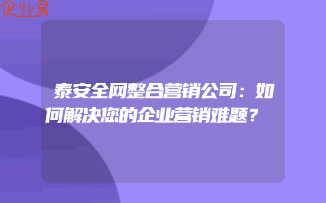- 泰安全网整合营销公司:如何解决您的企业营销难题?